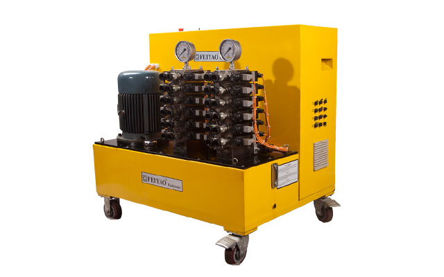 - FY系列分流同步閥架通過快插接頭連接標(biāo)準(zhǔn)液壓泵站,形成分流同步泵站,連接便利;