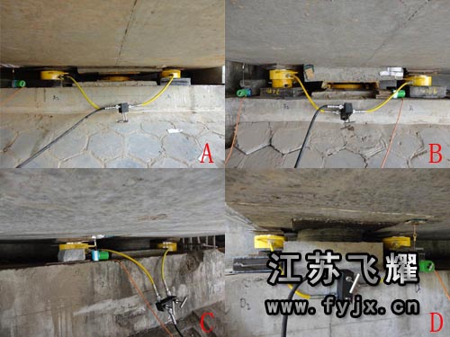 首先我司工作人員對(duì)鎮(zhèn)江路段橋梁的跨距、每跨的梁片數(shù)、梁片的結(jié)構(gòu)形式以及橋梁的高度進(jìn)行現(xiàn)場(chǎng)現(xiàn)場(chǎng)勘察。并查看相關(guān)圖紙核實(shí)橋梁縱向連續(xù)梁片數(shù),從而初步計(jì)算出梁體重量及荷載能力。然后經(jīng)過(guò)測(cè)量梁片與墩臺(tái)之間的實(shí)際距離,研究放置千斤頂?shù)奈恢眉芭R時(shí)支撐位置。討論現(xiàn)場(chǎng)施工操作人員、觀察人員的位置以及整個(gè)施工環(huán)境。